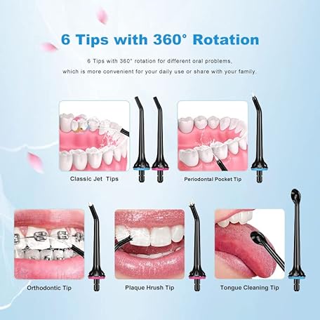 Thông tin sản phẩm Cordless Water Flosser, 4 Modes Professional Dental Oral Irrigator with 6 Jet Tips and 300ML Water Tank, Rechargeable IPX8 Waterproof Teeth Cleaner Water Floss for Teeth/Braces Care Black