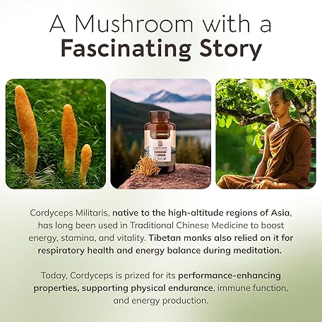 Thông tin sản phẩm Cordyceps Mushroom Capsules Supplement (120) | Pure Fruiting Body 10:1 High Strength Extract | 30% Beta-D Glucans | 9,000mg Raw Equivalent Per Serving | No Fillers | Energy, Stamina & Oxygen Support