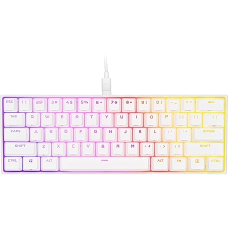 Thông tin sản phẩm Corsair - K65 RGB Mini Wired 60% Mechanical, CH-9194114-NA, Cherry MX Speed Linear Switch Gaming Keyboard with PBT Double-Shot Keycaps - White (Renewed)