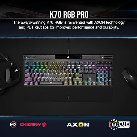 Thông tin sản phẩm Corsair K70 RGB PRO Wired Mechanical Gaming Keyboard (CHERRY MX RGB Blue Switches: Tactile and Clicky, 8,000Hz Hyper-Polling, PBT DOUBLE-SHOT PRO Keycaps, Soft-Touch Palm Rest) QWERTY, NA - Black