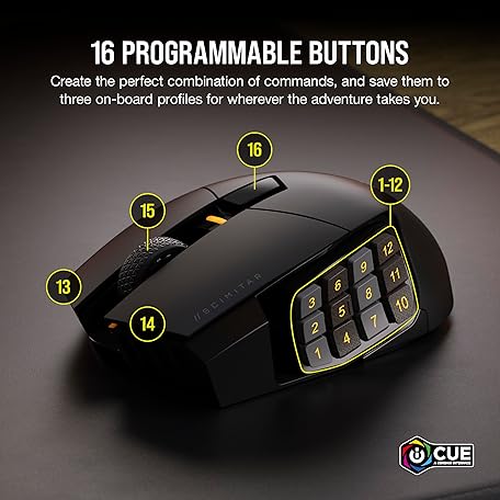Sản phẩm Corsair SCIMITAR ELITE RGB WIRELESS MMO Gaming Mouse - 26,000 DPI - 16 Programmable Buttons - Up to 150hrs Battery - iCUE Compatible - Black đang được bán với giá ưu đãi là $123.824 tại nước Anh.