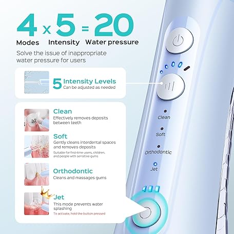 Sản phẩm COSLUS Water Flosser for Teeth Cordless: 4 Modes & 20 Levels - Portable Irrigador Dental for Health - Conscious Sensitive Users Gums - Travel Home Use with 4 Jet Tips - Blue đang được bán với giá ưu đãi là $29.8115 tại nước Anh.