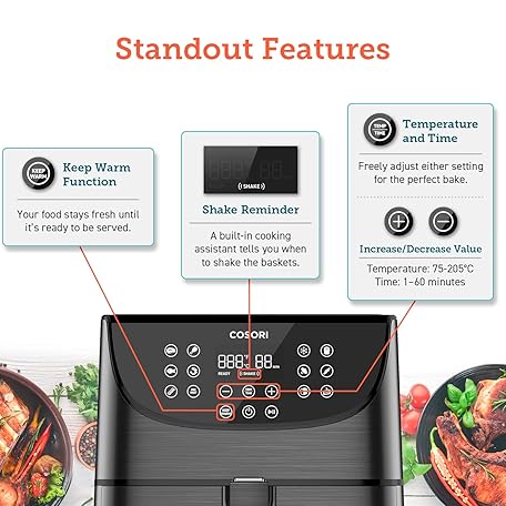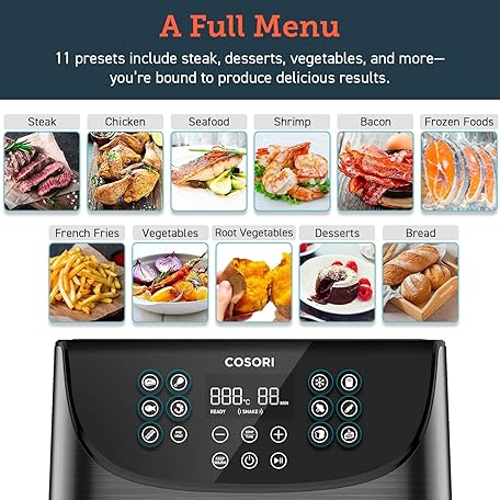 Thông tin sản phẩm COSORI Air Fryer Oven With Rapid Air Circulation, 100 Recipes Cookbook, 3.5L Air Fryers For Home Use With One-Touch Digital Screen, 11 Cooking Presets, Nonstick Basket,Shake Remind, 1500W