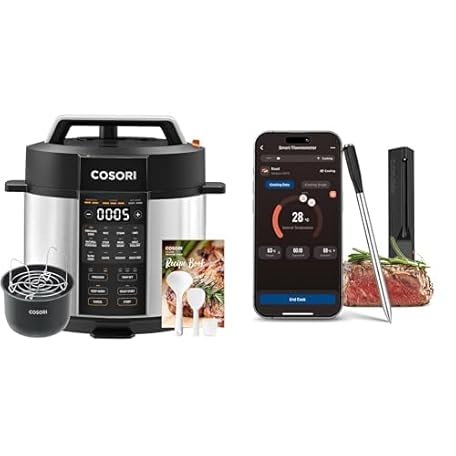 Thông tin sản phẩm COSORI Pressure Cooker Electric and Wireless Meat Thermometer, 14 Functions(Slow&Rice Cooker, Sous Vide, Cake Maker, etc.), 70% Faster, Non-Stick, 65+ Recipes(Cookbook&Online)
