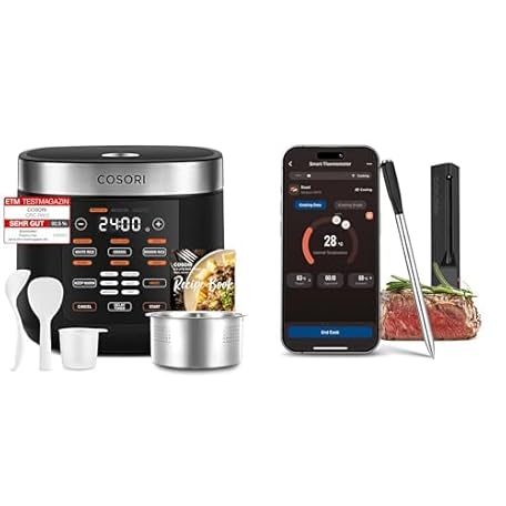 Thông tin sản phẩm COSORI Rice Cooker and Meat thermometer, Slow Cooker & Steamer with Ceramic Coated Inner Pot and Fuzzy Logic, 50 Recipes,10 Cups, 5L Capacity, with 17 Functions, Warmer, Timer, Black