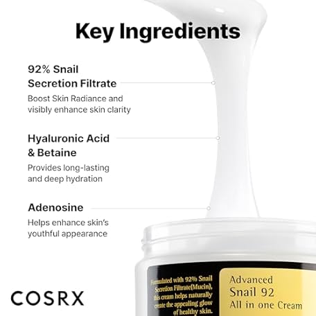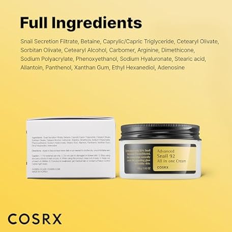 Thông tin sản phẩm COSRX Advanced Snail 92 All in One Cream Korean Snail Mucin Face Cream & Gel Moisturiser for Dry Sensitive and Anti Aging Skin, Daily Soothing and Moisturising Cream, Korean Skincare 100g