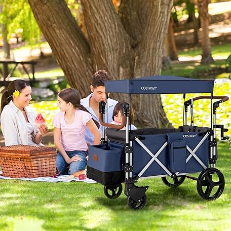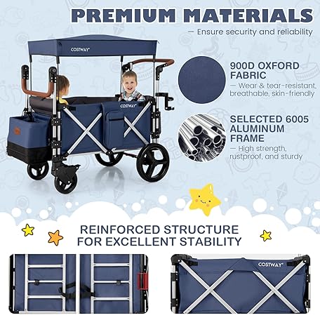 Thương hiệu COSTWAY là cái tên nổi tiếng được rất nhiều khách hàng trên thế giới chọn lựa. Với kiểu dáng đẹp mắt, sang trọng, sản phẩm COSTWAY Push Pull Stroller Wagon for 2 Kids, Collapsible Trolley with Adjustable Handle Bar, Removable Canopy, 5-Point Harness and Drapes, Outdoor Camping Cargo Cart (Navy) là sự lựa chọn hoàn hảo nếu bạn đang tìm mua một món cho riêng mình.