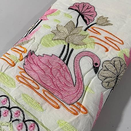 Sản phẩm Cotton Embroidery Fabric Floral Golden Zari Metallic Dress Craft Material 44" Wide by The Meter (Swan Lotus) đang được bán với giá ưu đãi là $12.9056 tại nước Anh.