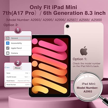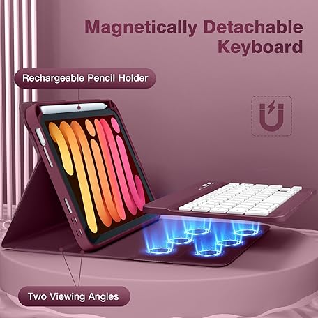 Thông tin sản phẩm Cousper for iPad mini 7 Keyboard Case A17 Pro 2024/iPad Mini 6 Generation Case with Keyboard 2021 8.3 Inch, Pencil Holder, 7 Color Backlit Detachable Keyboard Cover for iPad mini 7th/6th Gen,Mulberry