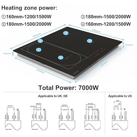 Thông tin sản phẩm COVERCOOK Built-in Induction Hob, 4 Zone Induction Hob 60cm with Bridge Zone, 7000W Electric Cooktop Touch Control with Timer, Child Lock, Boost, Pause Function, Black