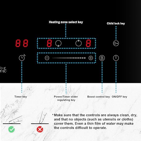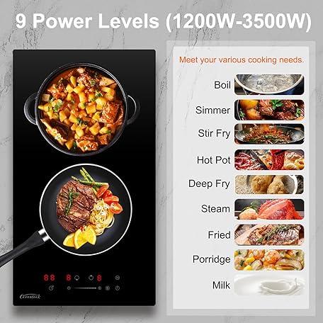 Thông tin sản phẩm COVERCOOK Induction Hob 2 Zone, Built-in Induction Cooker 30cm, Double Induction Hob with Boost Function, Slider Touch Control, Timer, Child Safety Lock, 9 Power Levels, 3500W, Hard Wired, No Plug