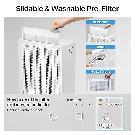 Thông tin sản phẩm COWAY Air purifier for Home Bedroom, ECARF Quietmark Certified 20dB Sleep Mode, Removes up to 99.999% of Harmful Particles down to 0.01 µm for Allergy, Smoke, Pollen, Pet - Airmega 150 (White)
