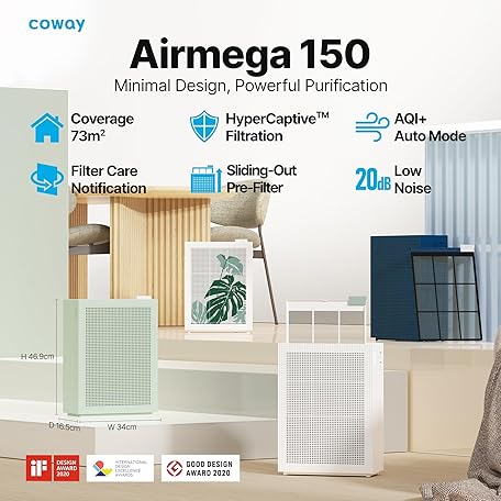 Thương hiệu Coway là cái tên nổi tiếng được rất nhiều khách hàng trên thế giới chọn lựa. Với kiểu dáng đẹp mắt, sang trọng, sản phẩm COWAY Air purifier for Home Bedroom, ECARF Quietmark Certified 20dB Sleep Mode, Removes up to 99.999% of Harmful Particles down to 0.01 µm for Allergy, Smoke, Pollen, Pet - Airmega 150 (White) là sự lựa chọn hoàn hảo nếu bạn đang tìm mua một món cho riêng mình.