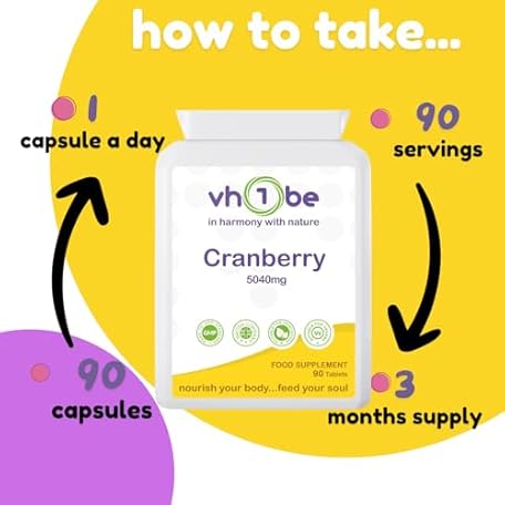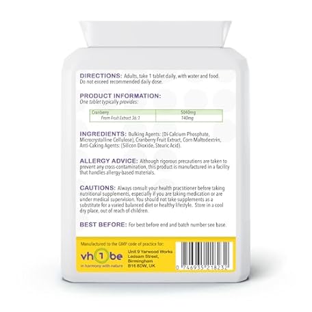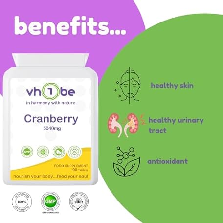 Thông tin sản phẩm Cranberry Tablets 5040mg – 90 Vegan Tablets | High Strength Cranberry Supplement for UTI Prevention - Urinary Tract, Bladder Support & Kidney Cleanse | 3 Month Supply | Non-GMO, UK Made by vh1be