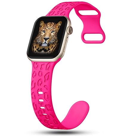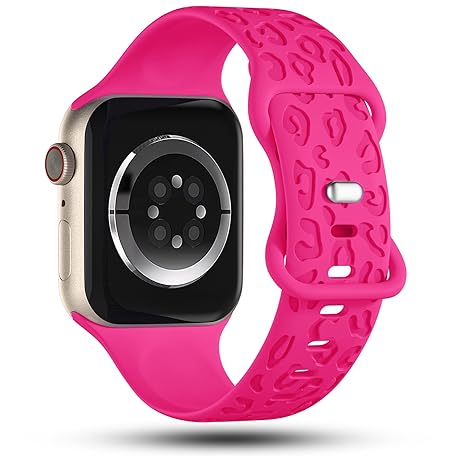 Sản phẩm CreateGreat Engraved Bands Compatible with Apple Watch Band 41mm 40mm 38mm, Leopard Carve Pattern Soft Silicone Strap Compatible with iWatch Series 8 7 6 5 4 3 2 1 SE, Women Men,Leopard-Hot Pink đang được bán với giá ưu đãi là $16.7533 tại nước Anh.