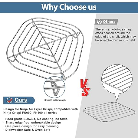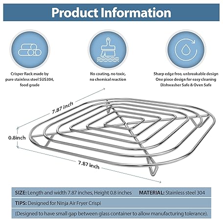 Thông tin sản phẩm Crisper Rack for Ninja Crispi Air Fryer FN101, Ninja Air Fryer Accessories, Ninja Air Fryer Grill Rack, Food Grade, Stainless Steel SUS304, Silver
