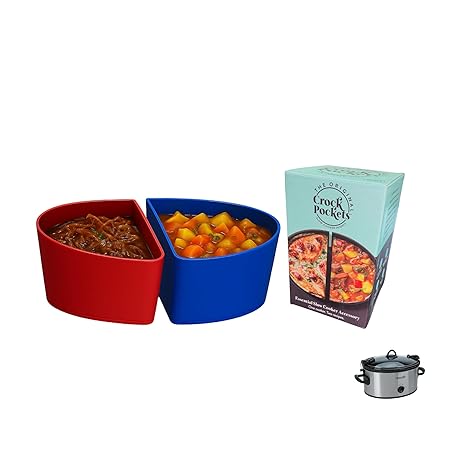 CrockPockets Red and Blue 6-Quart Slow Cooker Liners 2 Pc. Dividers Set, Reusable Silicone Crock Pot Inserts, Non-Stick and Leak Resistant, BPA Free, Dishwasher Safe