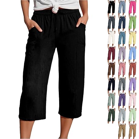 Sản phẩm Cropped Trousers for Women Linen Summer Loose Petite Hiking Shorts Drawstring Elasticated Waist 3/4 Length Joggers Baggy Wide Leg Pants Ladies Casual Trouser with Pockets đang được bán với giá ưu đãi là $10.0389 tại nước Anh.