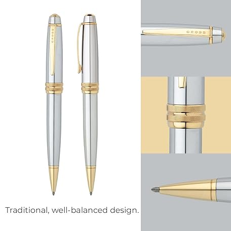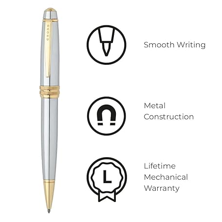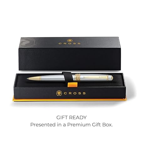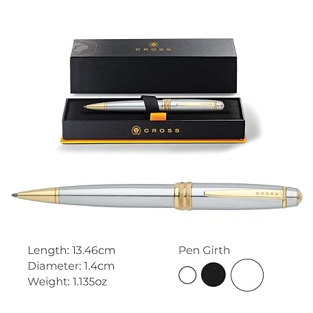 Thông tin sản phẩm CROSS Bailey Refillable Click-Off Cap Plastic Ballpoint Pen with Chrome Finish and Gold-Plated Appointments, Medium Ballpoint, includes Premium Gift Box and Black Cartridge, 1 Pack, Medalist