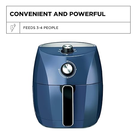 Thông tin sản phẩm Crux 3.5 L Manual Air Fryer, Faster Pre-Heat, No-Oil Frying, Fast Healthy Evenly Cooked Meal Every Time, Dishwasher Safe Non Stick Pan and Crisping Tray for Easy Clean Up, Stainless Steel/Blue