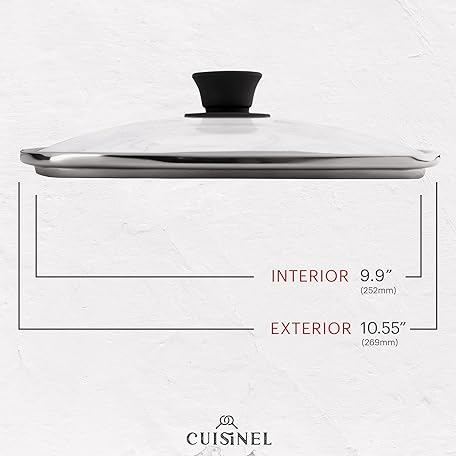 Thông tin sản phẩm cuisinel Cast Iron Grill Pan + Glass Lid - 10.5"-Inch / 26.67cm Pre-Seasoned Square Grilling Skillet + Silicone Handle Cover + Pan Scraper - Grill, Stovetop, Induction Safe - Indoor and Outdoor Use