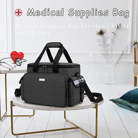 Thông tin sản phẩm CURMIO Medical Supplies Bag, Home Health Aid Bag with Shoulder Strap for Nurse, Physical Therapists, Doctors, Home Health Staffs, Black (Patented Design)
