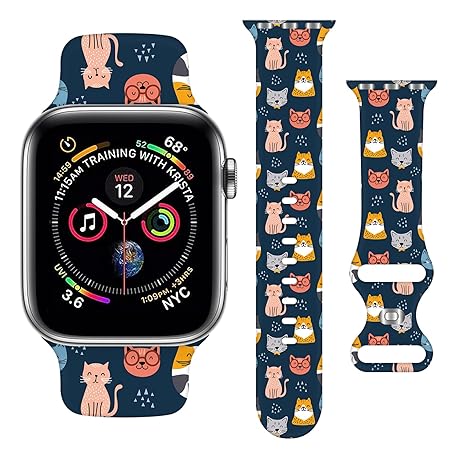 • Cute Cat Strap Compatible with Apple Watch Band 38mm 40mm 41mm 42mm 44mm 45mm 46mm 49mm Men Women,Adjustable Soft Silicone Sport Wristbands for iWatch Ultra Series 10 9 8 7 6 5 4 3 2 1 SE
