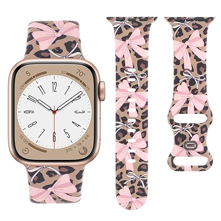 Cute Floral Printed Strap for Apple Watch Bands 38mm 40mm 41mm 42mm 44mm 45mm 46mm 49mm Women, Soft Silicone Leopard Bow Pattern Design Wristbands for iWatch Series 11,10,9, 8,7,6,5,4,3,2,1,SE