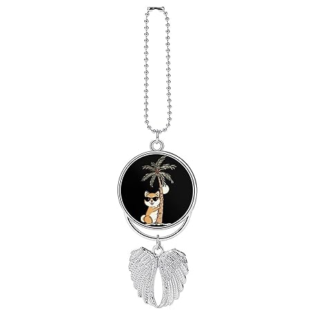 Cute Shiba Dog Palms Tree Car Hanging Ornament Mirror Accessories Angel Wings Pendant