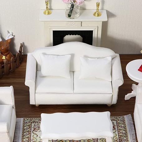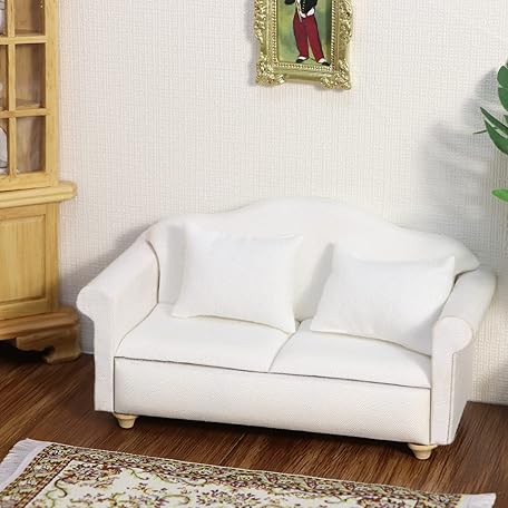 Sản phẩm Cutemini 1:12 Scale Classic White Double Sofa Dollhouse Furniture Miniature Couch with Pillows for Living Room Desktop Decoration Mini Scene Accessories Ornament Pretend Play đang được bán với giá ưu đãi là $26.7486 tại nước Anh.