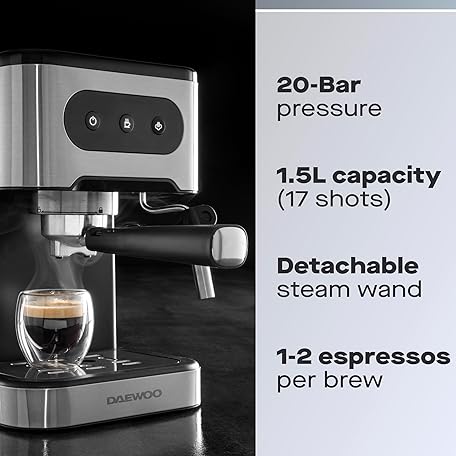 Sản phẩm Daewoo 20bar Espresso Coffee Maker With Steam Wand, Barista Quality Coffee, For Ground Coffee đang được bán với giá ưu đãi là $116.0414 tại nước Anh.
