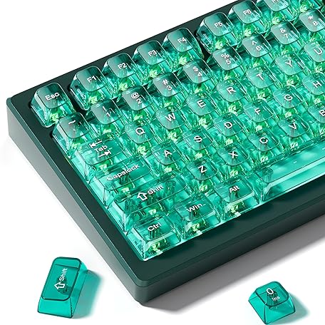 Thông tin sản phẩm dagaladoo Green Clear keycaps,Transparent keycaps 60 75 100 Percent,Ceramic Jelly Key caps Set,Shine Through Key caps.,MDA Profile Keyboard Key Cap for Mx Switches Mechanical Keyboard(115key)