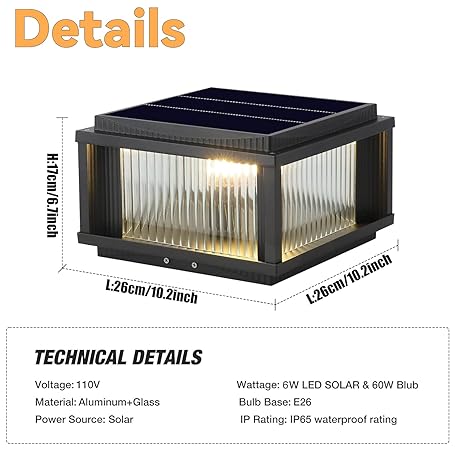 Sản phẩm DAHGEO Outdoor Solar Post Light Modern Solar Column Lights Luxury Fence Deck Post Cap Light with IP65 Waterproof Pillar Lights Outdoor for Flat Surface Patio Garden Decoration đang được bán với giá ưu đãi là $118.1015 tại nước Anh.