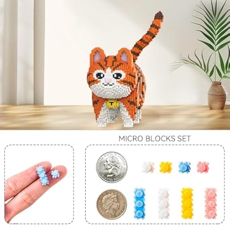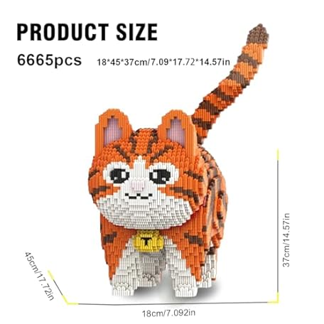 Thông tin sản phẩm DAHONPA Animal Bell Orange Striped Cat Cute Micro Building Blocks Set(6665PCS), Creative Home & Office Decor, Gift for Adults and Kids