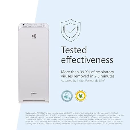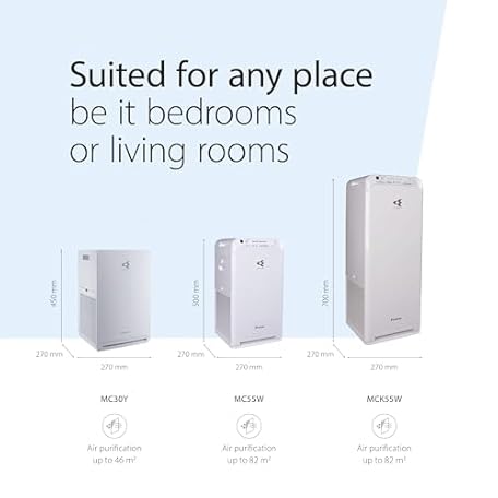 Thông tin sản phẩm Daikin Air Purifier Humidifier - with HEPA Filter - Air Cleaner for home and bedroom - Virus, Hay fever, Pollen & Dust Remover - Streamer Technology - Air Quality Monitor - Up to 82m² - MCK55W