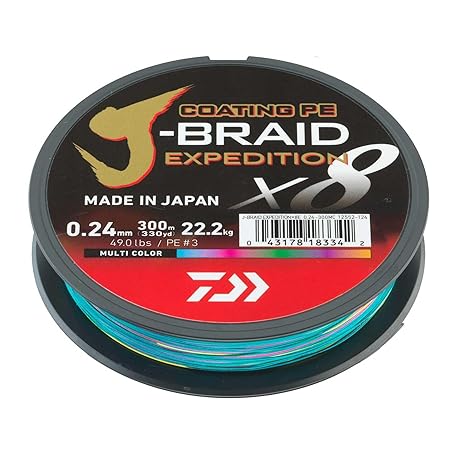 • DAIWA J-Braid Expedition X8E, 0.13mm, 8.4kg/18.5lbs, 300m, Multi-Color, Braided Fishing Line, 12552-113