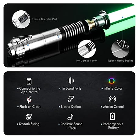 Thông tin sản phẩm DAMIENSABER - RGB3.0 Smooth Motion Control Dueling Lightsaber, 16 Sound Sources, Luke Lightsaber with 16 Solid RGB and Infinite Color Changing, Rechargeable Metal Grip for