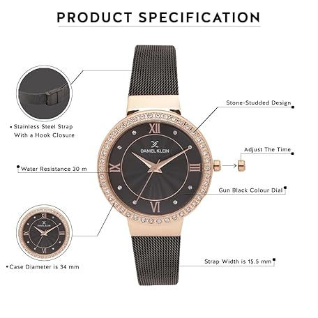 Thông tin sản phẩm Daniel Klein Women's Red Dial Analog Watch-DK11683-5, Rose Gold, Bracelet, Rose Gold, Bracelet