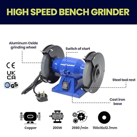 Thông tin sản phẩm Dapetz Bench Grinder Dual Wheel 200W 6 Inch Metal Sander Polisher 150mm 2,980 RPM Electric Sander Grinding Machine Workshop Power Tools for Grinding Sharpening Shaping Smoothing Polishing