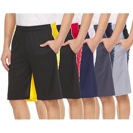 DARESAY Mens Athletic Shorts with Pockets, Workout Active Performance Shorts - 5 Pack, Set 1914, Large