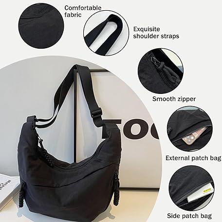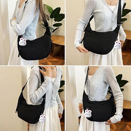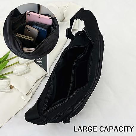 Thông tin sản phẩm DAVBNM Crescent Bag for Women, Half Moon Sling Crossbody Dumpling Bag, Adjustable Strap Multi Pockets Shoulder Bags for Travel Work Daily (Black)