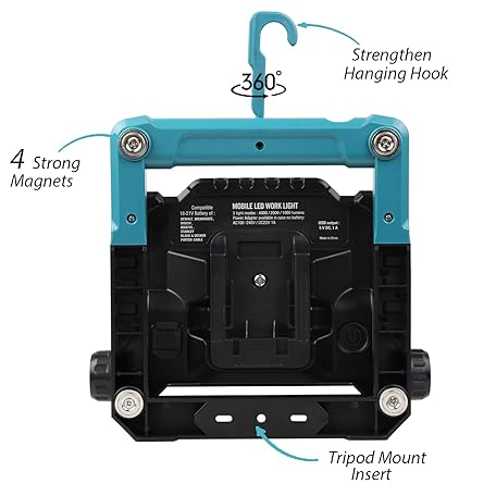 Thông tin sản phẩm DAYATOOL 4000Lumens Work Flood Light Cordless, Magnetic Portable Led Work Lights for Automotive, Compatible with Makita, Bosch, Dewalt Max 20v, Milwaukee 18v m18 Battery, Blue