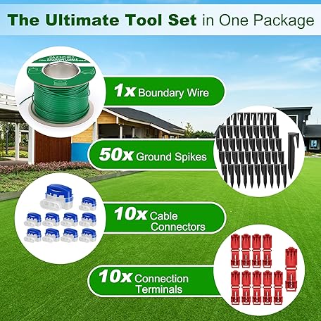 • DazSpirit 100 m Boundary Cable + 50 Pegs + 10 Cable Connectors + 10 Connection Terminals for Robot Lawnmower, Garden Wire Accessory Set, Compatible with Gardena Bosch Husqvarna Worx Honda Robomow etc