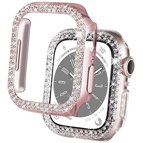 DEALELE [2-PACK] Case Compatible with Apple Watch Series Ultra 2 / Ultra (49mm), Bling Double-Rows Rhinestone Diamond Protective Case Cover Replacement Protector (49mm, Original Rose pink)