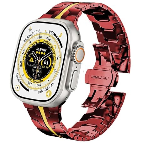 DEALELE Strap Compatible with Apple Watch 41mm 40mm 38mm, Thin Iron Man Stainless Steel Metal Replacement Bands for iWatch Series 9 / 8 / 7 / 6 / 5 / 4 / 3 / SE Women Men, Red-gold