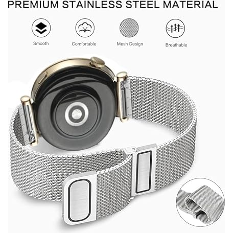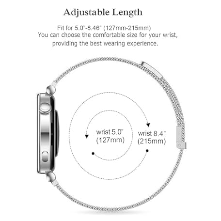 • DEALELE Strap Compatible with Huawei Watch GT5 Pro 42mm / GT5 41mm / GT4 41mm / Garmin Venu 3S / Fossil Women's Gen 6, 18mm Stainless steel Metal Milanese Magnetic Mesh Replacement Bands
