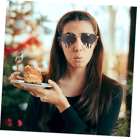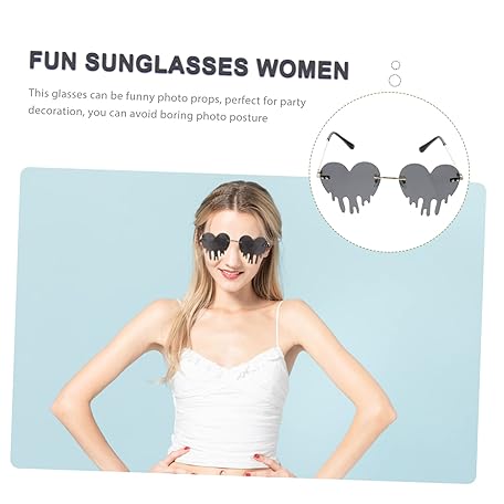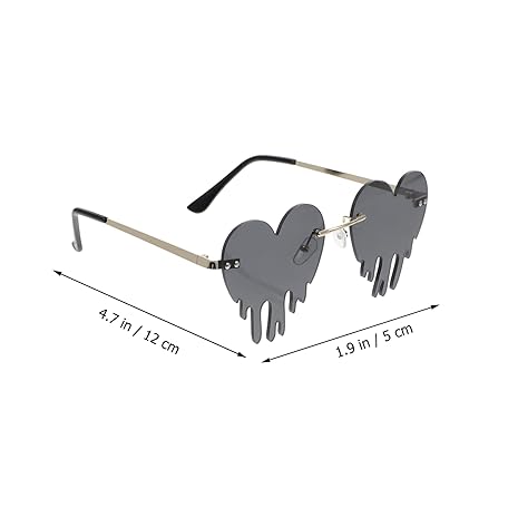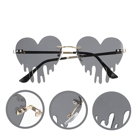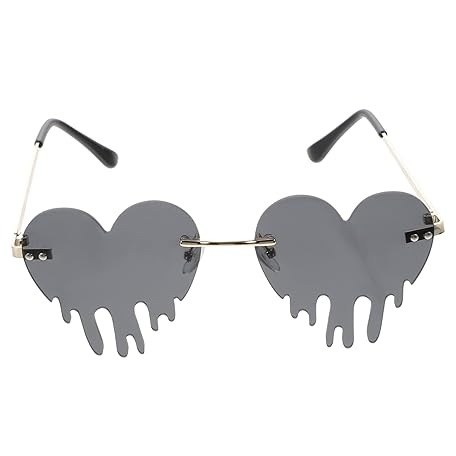 • DEARMAMY Heart Shaped Sunglasses with Dripping Design Fun Festival Accessories for Women Lightweight Frameless Glasses Unique Rave Party Eye Wear Comfortable Irregular Lens for Distinctive