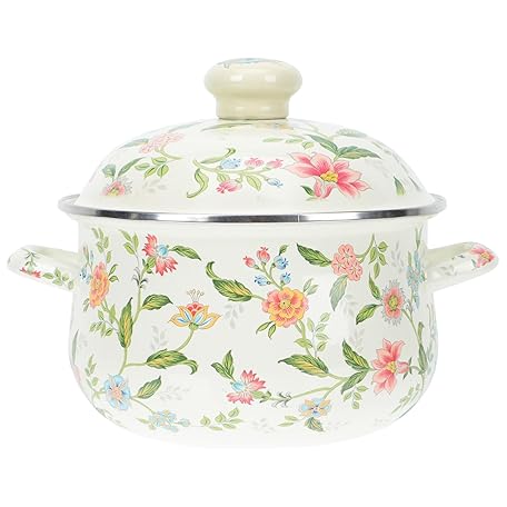 DEARMAMY Thickened Vintage Enamel Stockpot with Lid Double-Handle Stew Pot for Home Cooking High-Temperature Soup and Milk Pot Compatible with Induction and Gas Cooktops
