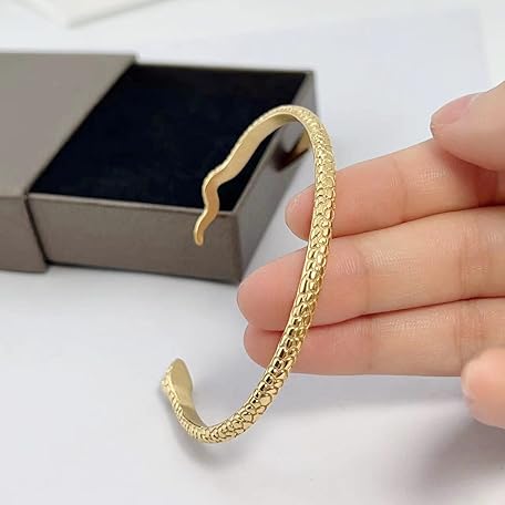Thông tin sản phẩm DEAROK 14K Gold Bracelets for Women Snake Cuff Bracelet for Women Open Bangles Bracelets for Women Friendship Gift, M, 316 Surgical Steel 14K Gold, no gemstone