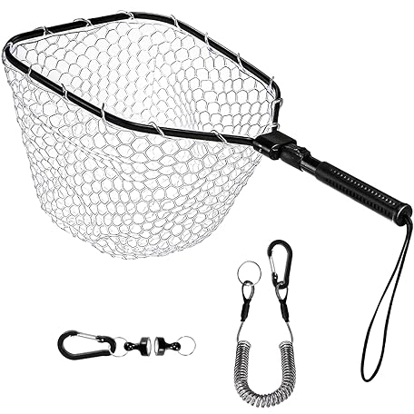 DEAYOU Fly Fishing Landing Net, Soft Rubber Mesh Bass Trout Net with Collapsible Handle and Magnetic Release, Folding Catch and Release Net for Freshwater, Fly Fishing Gear Accessories
